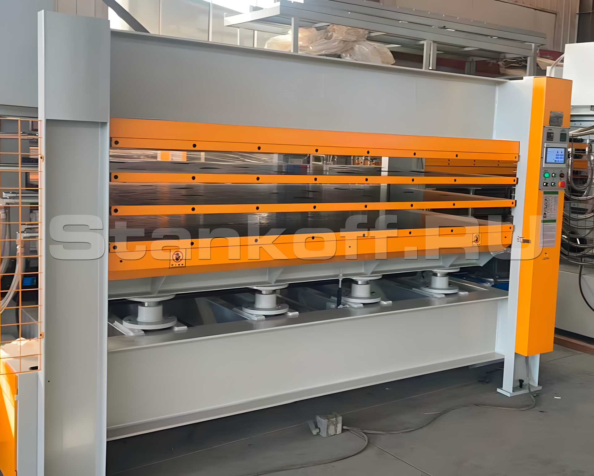 Такой пресс применяется в производстве клееных панелей, ламинатов, декоративных и конструкционных плит, а также может использоваться в мебельной, автомобильной, авиационной и других отраслях промышленности.