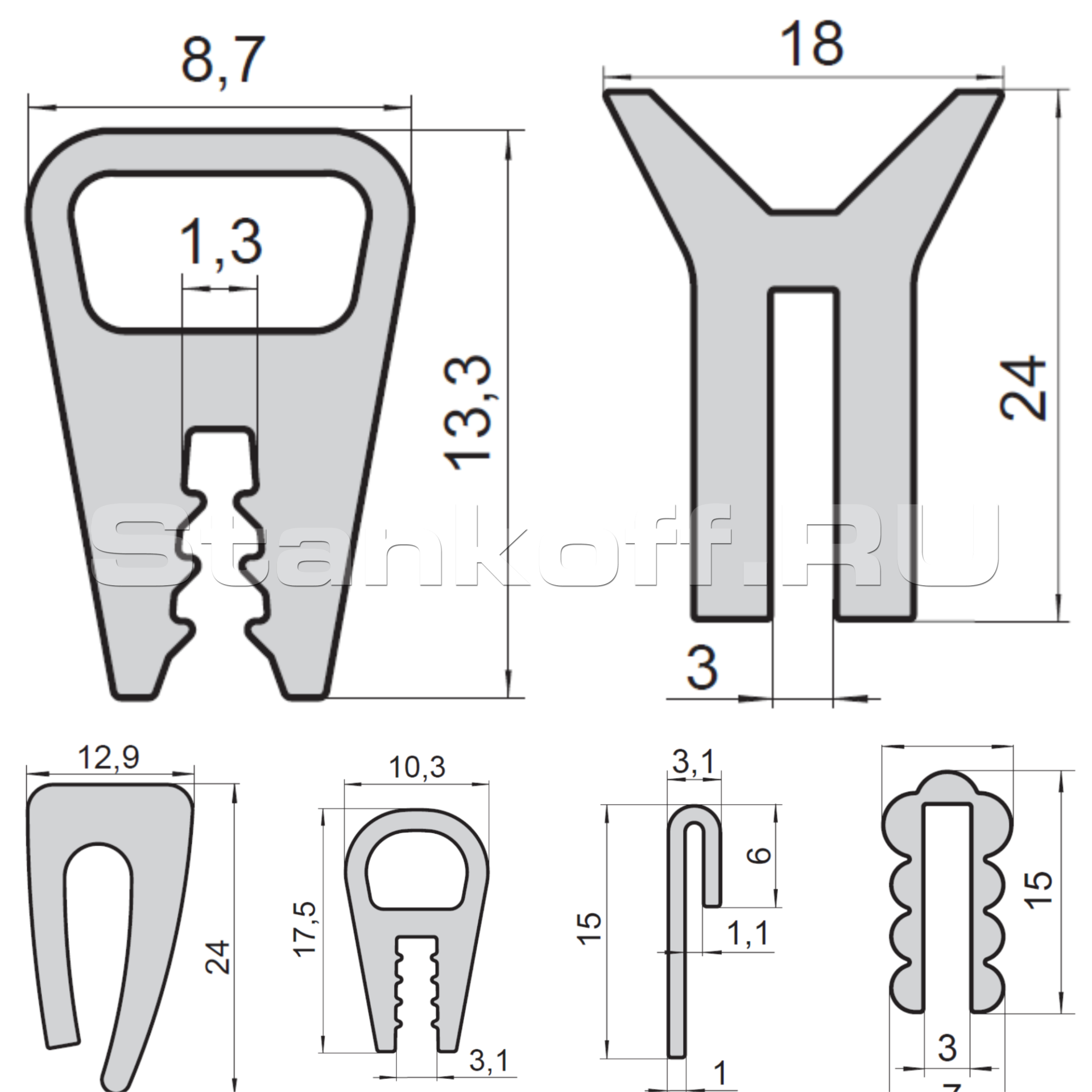 Типы и размеры П-образных профилей