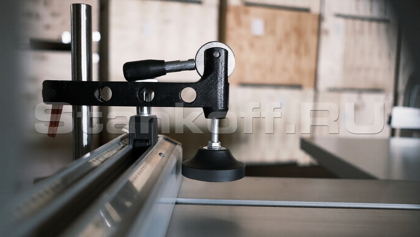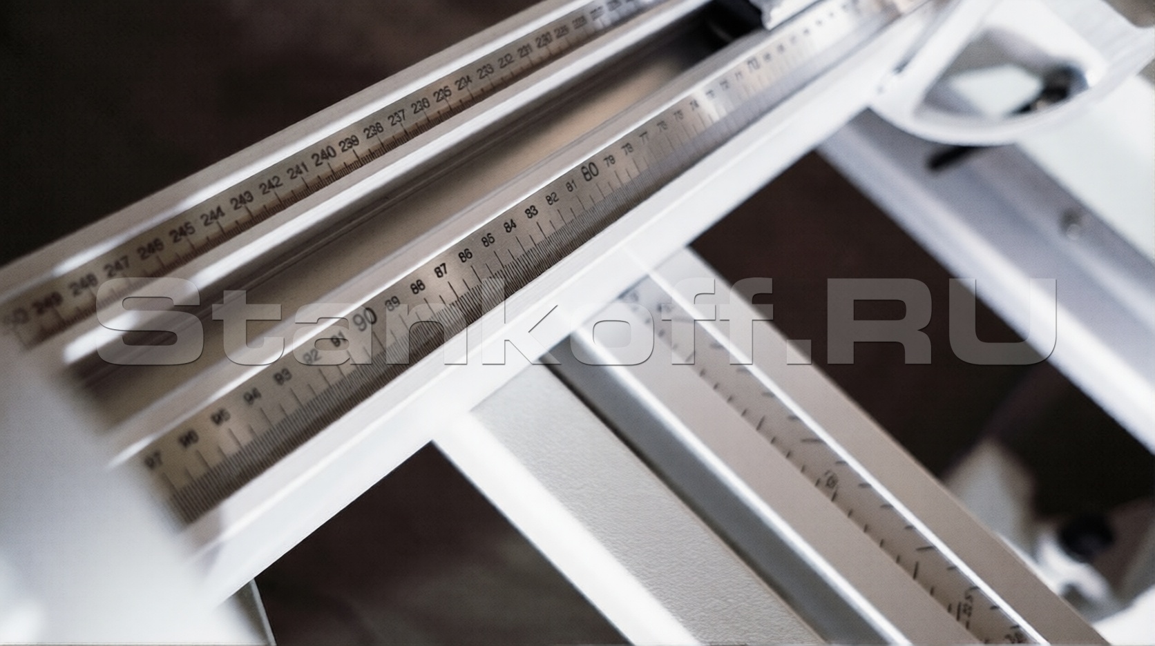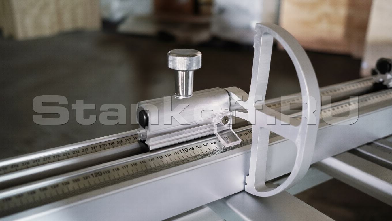 В стандартную комплектацию станка включен упор для раскроя заготовок не под прямым углом. Устанавливается на каретку и настраивается с помощью специальной шкалы.Настройка пил