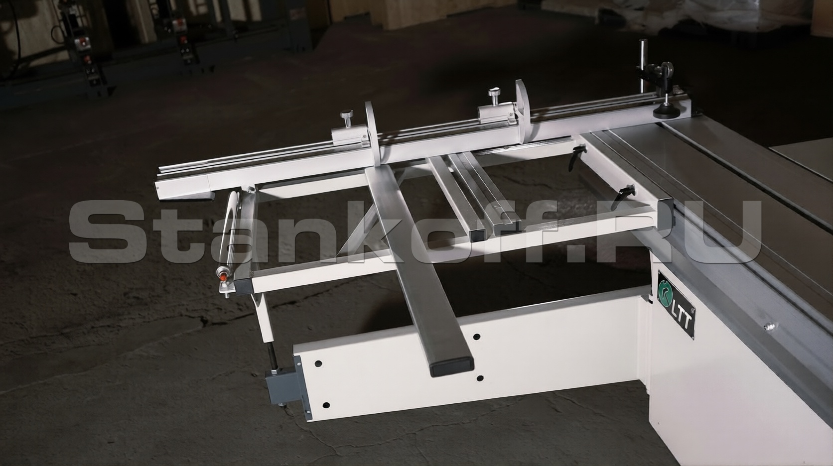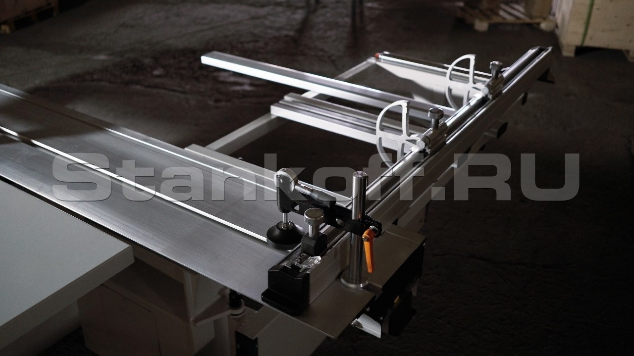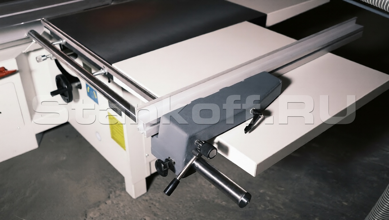В стандартную комплектацию станка включен упор для раскроя заготовок не под прямым углом. Устанавливается на каретку и настраивается с помощью специальной шкалы.Настройка пил