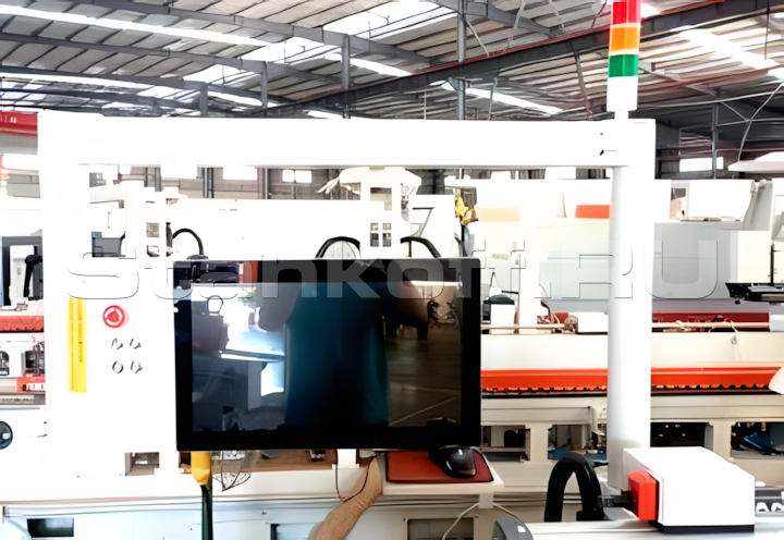 Пользовательский интерфейс автоматического кромкооблицовочного станка выполнен на базе промышленной сенсорной панели 21,5″ с ёмкостным экраном, памятью 4 ГБ и накопителем 64 ГБ под управлением Windows 10. Система поддерживает сетевое подключение и открытые интерфейсы данных, а управление функциями и PLC реализовано в режиме «одной кнопки» для простоты и удобства эксплуатации.Система нанесения разделительной жидкости