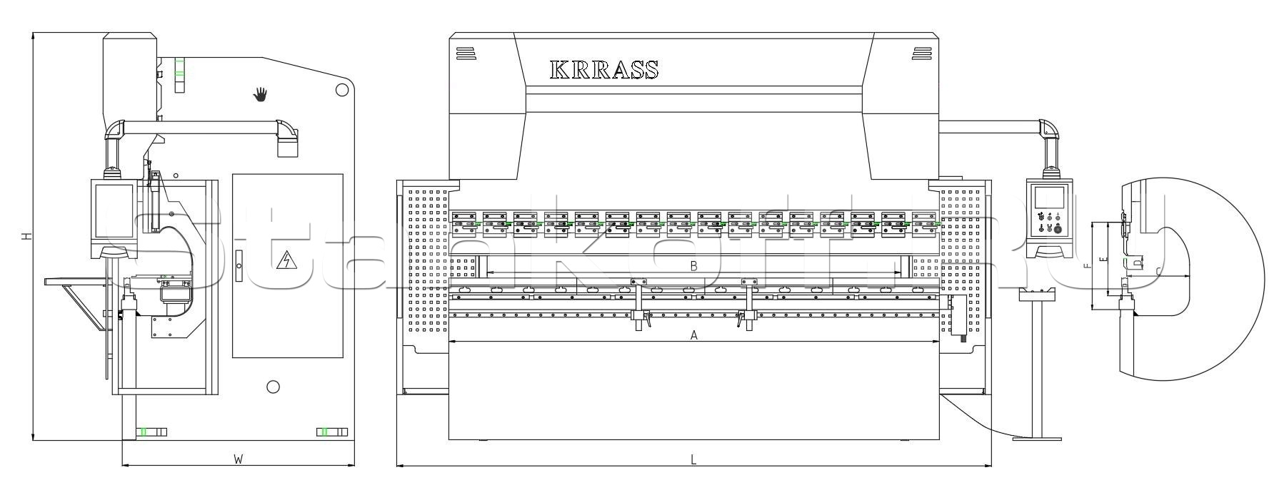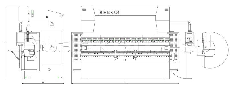 Пресс разработан и изготовлен с применением новейших технологий компании KRRASS. Он оснащен передовой системой чисто электрического управления, которая напрямую приводит в движение прецизионную шарико-винтовую пару для перемещения вверх и вниз (ось Y) через редуктор серводвигателя. Управление осуществляется посредством решетчатой линейки, обеспечивая синхронную работу левой и правой сторон ползуна.