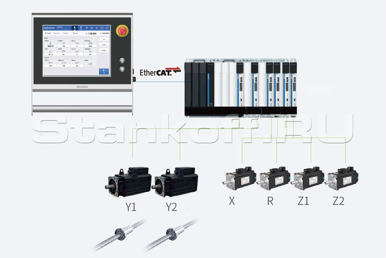 Автоматические управляемые оси – Y1, Y2, X, R, Z1, Z2.