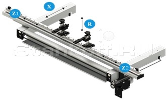 Выполнен на прочной конструкции, что гарантирует высокую повторяемость и точность позиционирования осей. ЧПУ-управляемый задний упор автоматически регулирует оси X (глубина) и R (высота), обеспечивая точное позиционирование материала и, как следствие, более высокое качество готовых изделий.