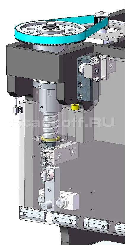 Такое конструктивное решение обеспечивает возвратно-поступательное движение ползуна без перекосов и дисбаланса, которые могут возникнуть из-за механических или электрических неисправностей, предотвращая повреждение или разрушение шарико-винтовой пары;