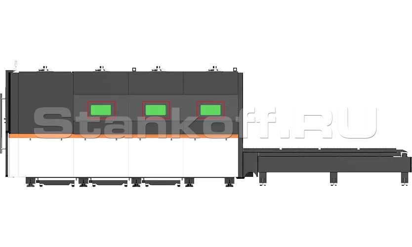 Все подвижные механизмы станка закрыты защитными кожухами для предотвращения попадания крупно и мелкодисперсной металлической пыли. Для удобства эксплуатации лазерный комплекс оснащён централизованной системой автоматической смазки. Система подаёт смазывающую жидкость в подвижные элементы с заданным давлением и интервалом.Металлическая защита гофры и кабельные цепи