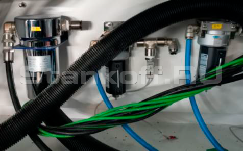 Японский пропорциональный клапан SMC и электромагнитный клапан. Три воздушных канала: для кислорода, сжатого воздуха и азота. Сигнализация давления воздуха Тройная фильтрация, отсутствие пыли и загрязнений в газе, эффективная защита лазерной головки и лазера во время работы.Система автоматической смазки