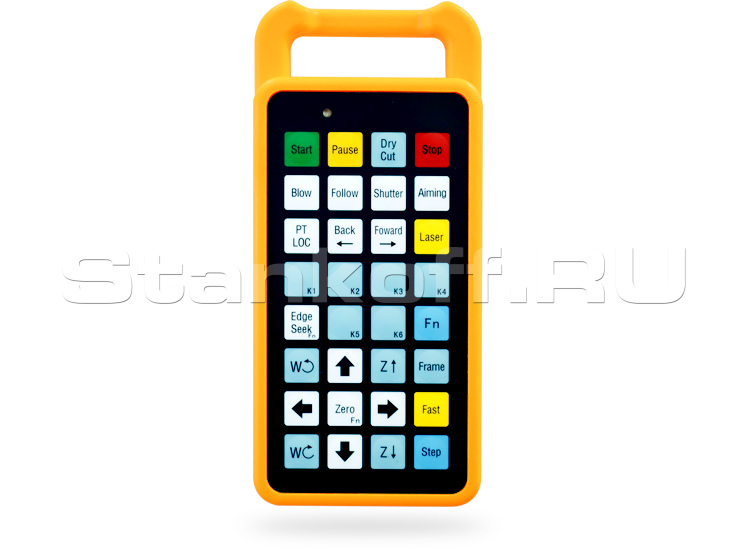 Управление координатной системой обеспечивается как со стойки ЧПУ, так и с помощью беспроводного пульта, что значительно облегчает позиционирование режущей головы по отношению к заготовке, а также упрощает работу оператора станка.