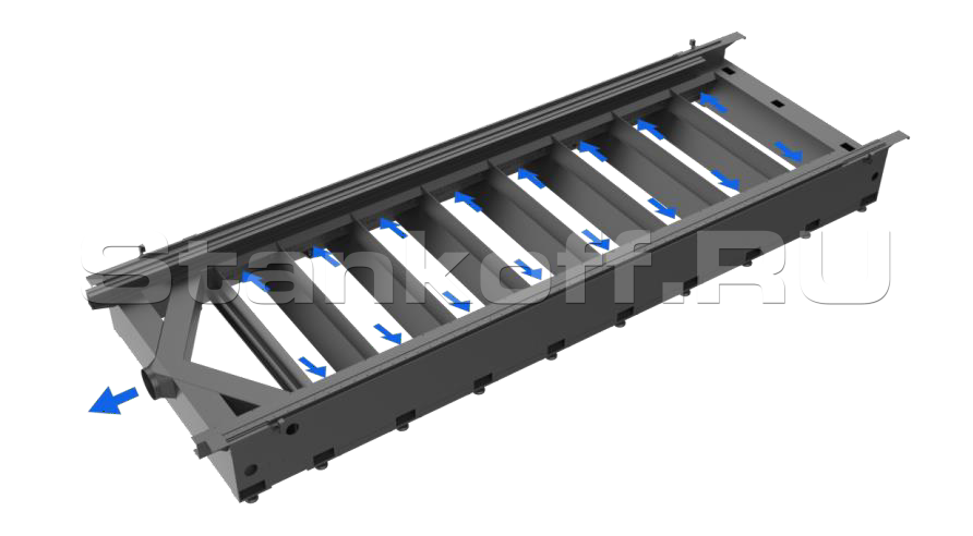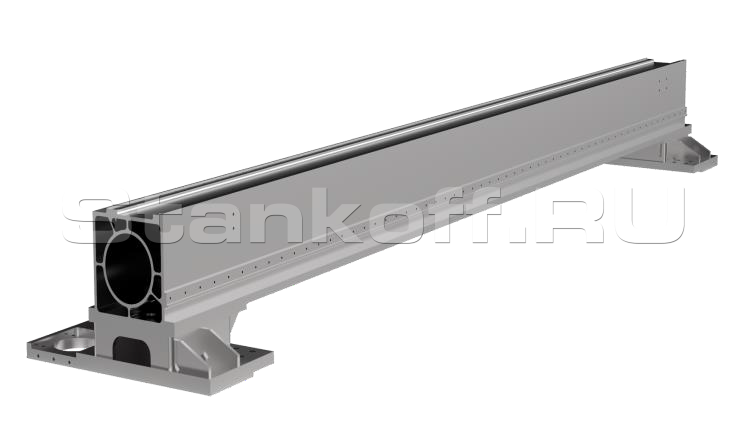 Станина сварена из высококачественной листовой стали и труб, а также подвержена высокотемпературному отжигу. Все сварные швы выполняются исключительно в защитной атмосфере. Данная процедура обеспечивает долгий срок службы станка без механических деформаций.Литой алюминиевый портал