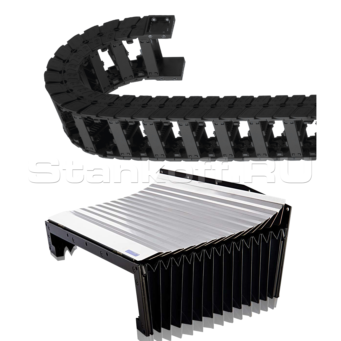 Направляющие и косозубые рейки станка закрыты гофрозащитными кожухами с металлическими накладками. Обычно используется только тканевая гофра, которая со временем прогорает и перестает выполнять грязезащитную функцию. Металлические накладки служат для предотвращения попадания окалины, искр, стружки на тканевую основу. Благодаря этому металлическому панцирю многократно увеличивается срок службы гофрированных кожухов.