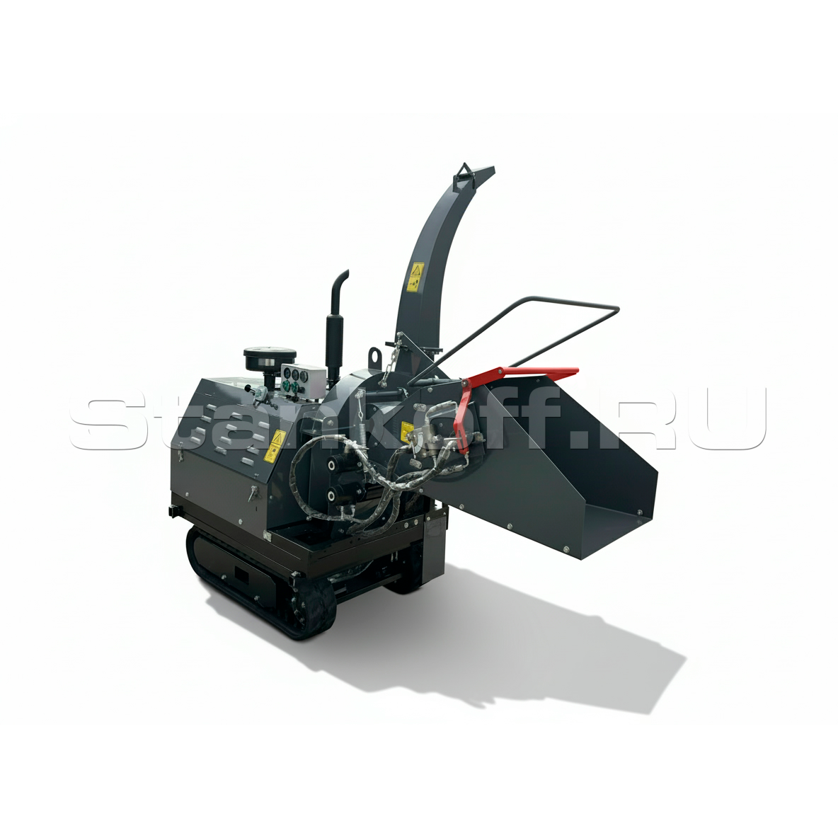 Измельчитель самостоятельно перемещается к месту работы: на строительную площадку или участок расчистки территории. Доставка древесины к машине не требуется.