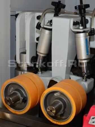 Бесступенчатая регулировка усилия прижима пневматических подающих роликов расположена на правой стороне защитного кожуха станка.Производитель: