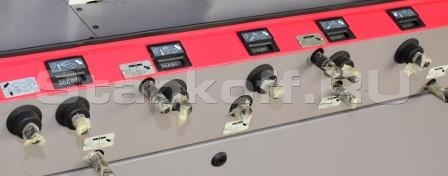 Для удобства оператора, на передней панели имеется дополнительный пульт управления станком.Регулировка прижима подающих роликов