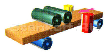 Подающий стол изготовлен из легированной стали, что значительно повышает ресурс станка и уменьшает трение между столом и заготовкой. Регулировка стола по вертикали и горизонтали осуществляется рычагами настройки.Полиуретановые приводные ролики на выходе