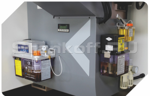 Централизованная система смазки подающего стола осуществляется встроенными насосами по всей длине с одного портала, что экономит расходные материалы и продляет срок службы станка и значительно упрощает обслуживание станка.