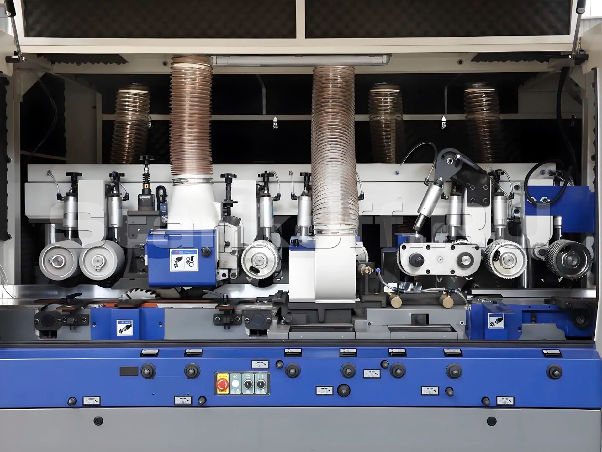 Простота регулировки: Наличие механической цифровой шкалы и удобной панели управления на передней части станка позволяет быстро настраивать шпиндели без необходимости снимать защитные кожухи.