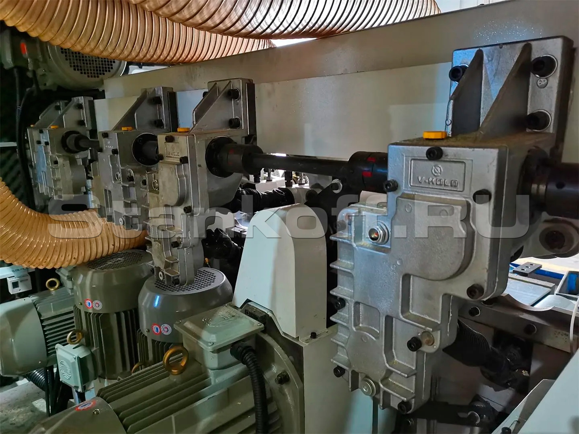 Вариатор известной фирмы Kawasaki (Япония) гарантирует плавную подачу пиломатериала в зону обработки. Усиленный безлюфтовый редуктор, через систему нижних и верхних карданных валов, обеспечивает мощную и стабильную подачу заготовок.Механизм подачи с мощной прижимной планкой