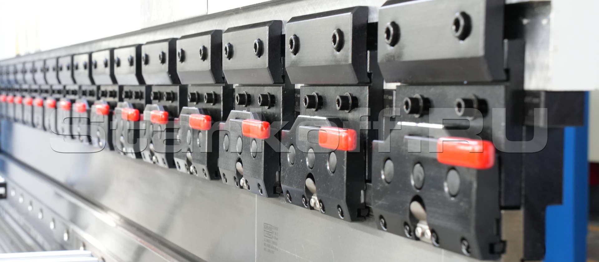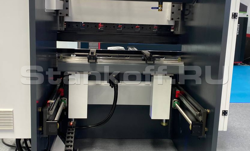 Листогибочный пресс оснащен задним упором, выполненным в виде прочной структуры, что обеспечивает оптимальную повторяемость и высокую точность позиционирования по осям.Система компенсации прогиба