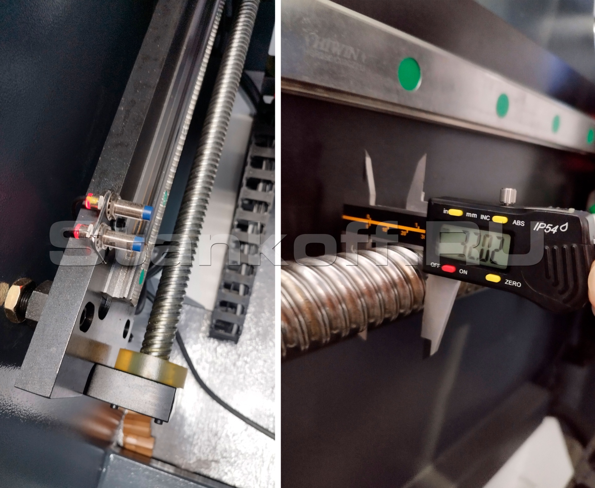 В данной системе каждый цилиндр работает независимо друг от друга. Магнитные (индуктивные) датчики Fagor установлены на отдельной подраме с обеих сторон станка.Гидроцилиндры