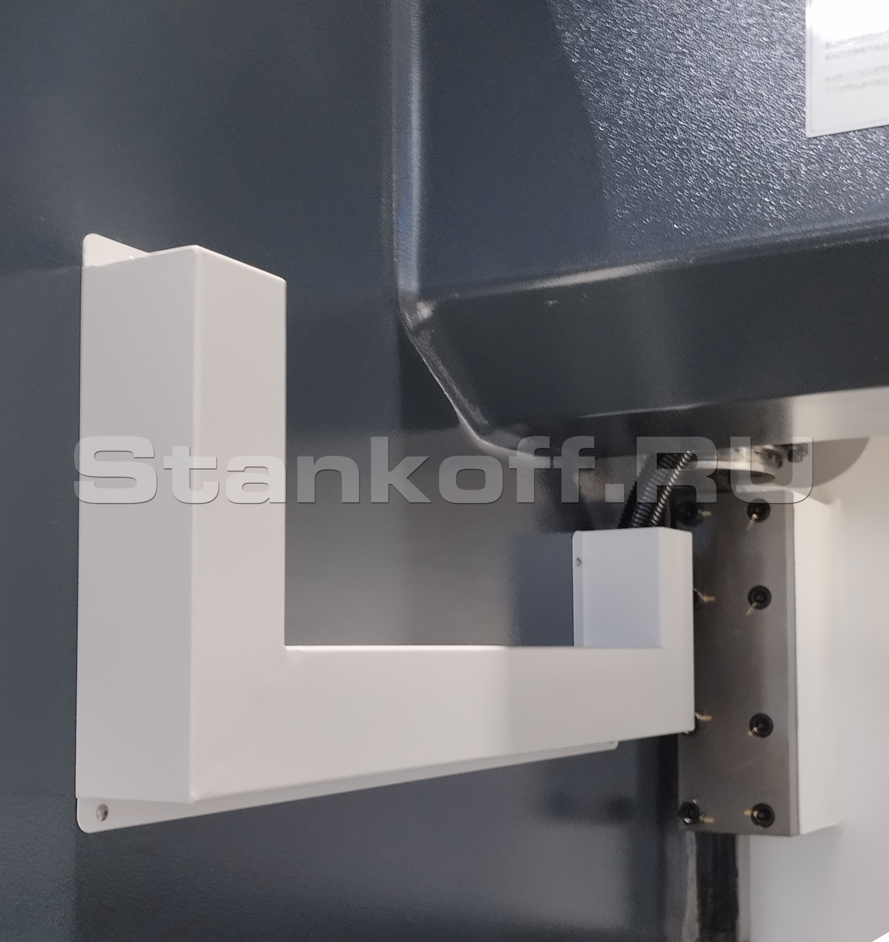 Кабельные каналы предназначены для защиты проводов, подключенных к оптической линейке и реле блока клапанов каждого из гидроцилиндров. Дополнительно все кабеля уложены в гофрозащиту, что предотвращает короткое замыкание и разрыв электрической схемы станка.Передняя поддержка листа (2 шт.)