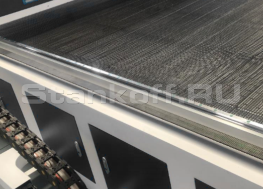 Конвейерный рабочий стол лазерного станка для ткани представляет собой сетчатую ленту из нержавеющей проволоки, перемещающую на себе материал по принципу, похожему на гусеницы танка.Автоподача рулонного материала