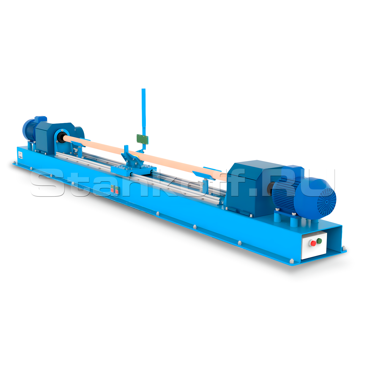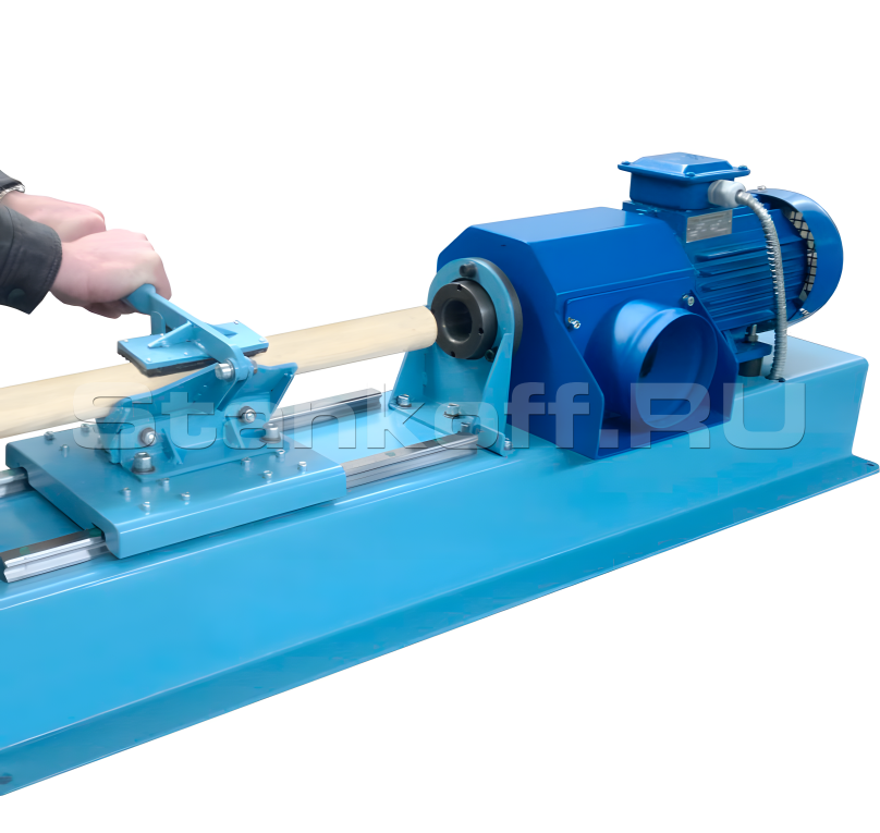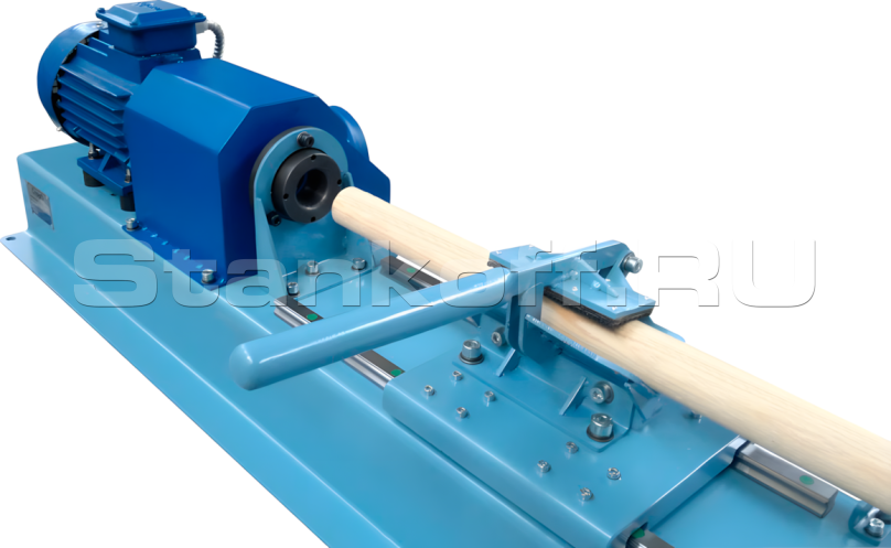 Станок предназначен для скругления торцов и формирования конуса на цилиндрических заготовках, получаемых на круглопалочных станках. Фреза установлена непосредственно на валу электродвигателя и закрыта защитным кожухом. Механизм подачи обеспечивает надёжную фиксацию заготовки без проворачивания и легко настраивается под необходимый диаметр.