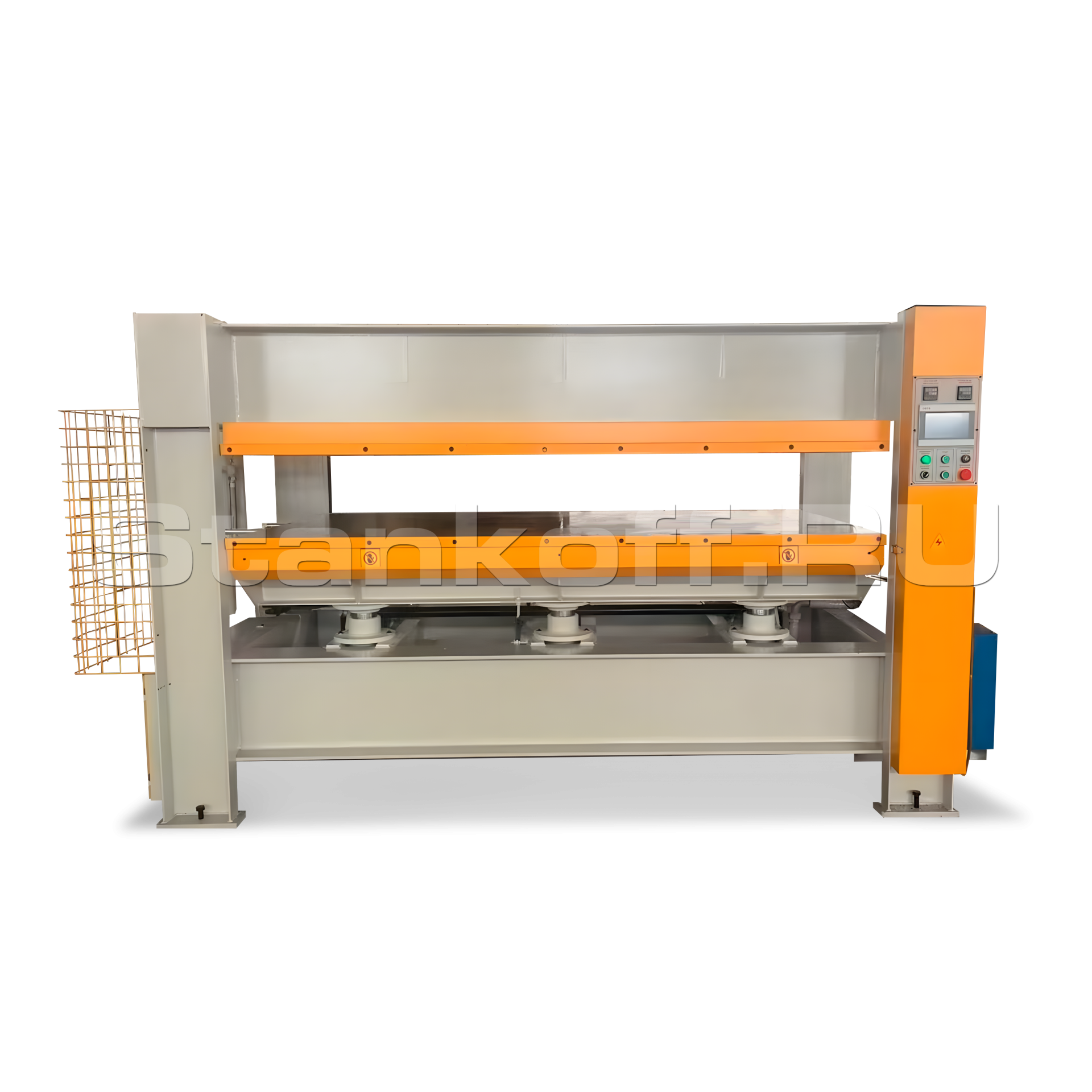 Гидравлический горячий пресс HIRC-200T1-3021 — мощное высокопроизводительное оборудование, предназначенное для формовки и прессования (например, фенолформальдегидных) материалов. С рабочим давлением в 2000 кН, он обеспечивает значительную прижимную силу для точной обработки крупных заготовок. Пресс оснащён четырьмя большими плитами размером 3000x2100x42 мм, что позволяет равномерно распределять давление на обрабатываемый материал.