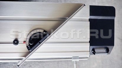 Поперечная линейка жестко фиксируется к поддерживающему столу в двух точках под углом 90 градусов к линии пропила. Настраивается единожды и не требует дополнительных регулировок. Полностью исключает смещения прямого угла.Защитный кожух