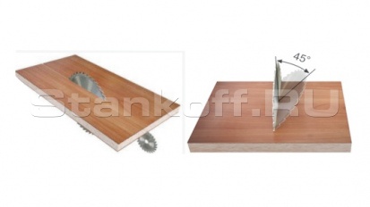 Наклон пильного узла 45 градусов позволяет осуществлять распил заготовки под углом.Пильный узел