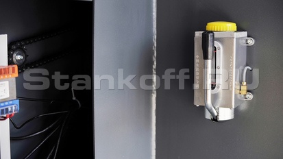 В стандартную комплектацию станка включен упор для раскроя заготовок не под прямым углом. Устанавливается на каретку и настраивается с помощью специальной шкалы.Отдельный электрошкаф
