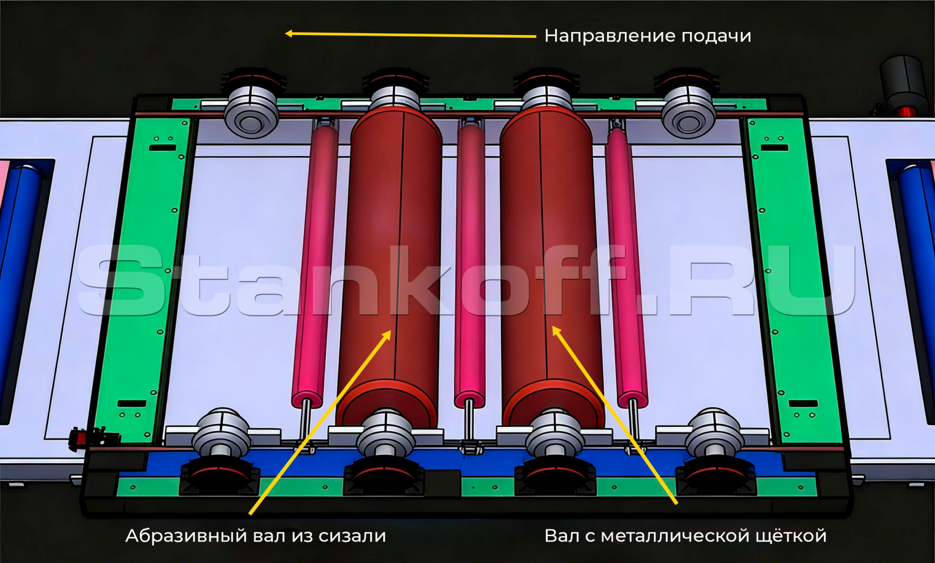Брашировальный станок LDX1000-2 предназначен для механической обработки поверхности древесины с целью выделения естественной текстуры, формирования рельефного рисунка и получения эффекта искусственного старения. Оборудование выполняет браширование за счет специальных абразивных щеток, эффективно удаляя мягкие волокна с поверхности заготовки и подчеркивая структуру древесины.