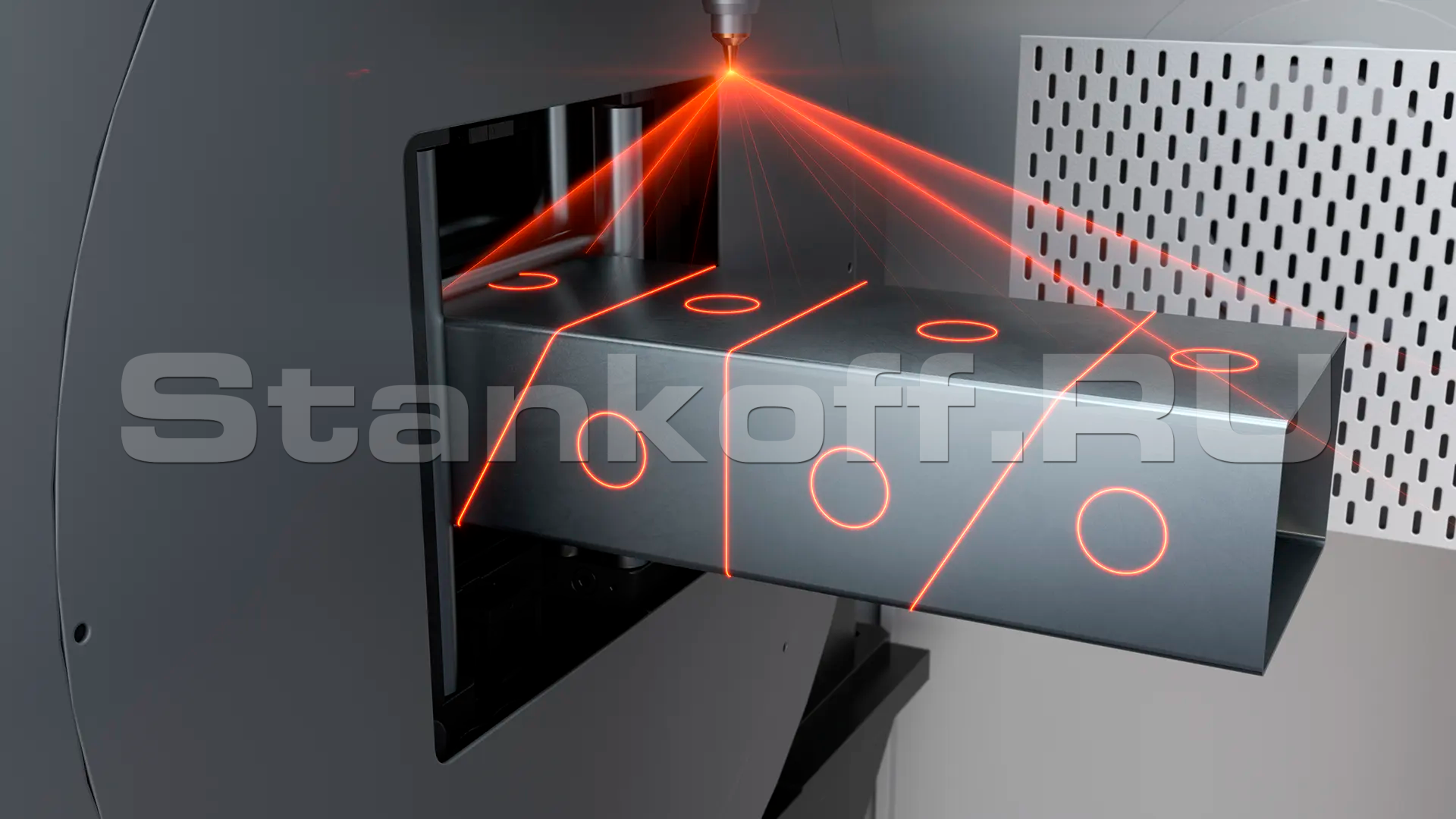 Технология волоконной лазерной резки обеспечивает узкий рез, ровную кромку, минимальную зону термического влияния и позволяет во многих случаях обходиться без дополнительной механической обработки. В стандартной комплектации станок оснащается системой ручной загрузки труб, а в зоне разгрузки установлен сервостол с активной поддержкой, который предотвращает провисание заготовок, повышает стабильность процесса и точность резки длинномерных профилей.
