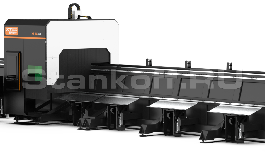 Оптоволоконный лазерный труборез с 3-мя патронами XTC-TX360-1206-3C/12000 Raycus предназначен для высокоточной резки круглых, квадратных, прямоугольных (с точностью реза 0,5 мм) и профильных труб неправильной формы (с точностью реза 0,5 - 0,8 мм) из нержавеющей, углеродистой и легированной стали, алюминия, меди, оцинкованного металла, титана и других материалов. Обрабатывает трубы диаметром от 40 мм до 360 мм и длиной от 2000 мм до 9000 мм. Максимальная длина готовой детали на выходе составляет 9000 мм.