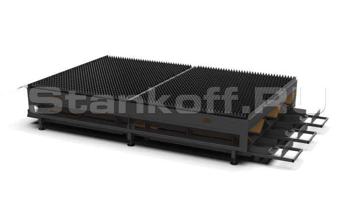 Усиленная сварная станина изготавливается из листовой высокопрочной стали с повышенным содержанием углерода. После сварки конструкция проходит высокотемпературный отжиг, что повышает её прочность и устойчивость к износу. Такие характеристики обеспечивают стабильную работу оборудования и высокую точность резки.Зональное дымоудаление