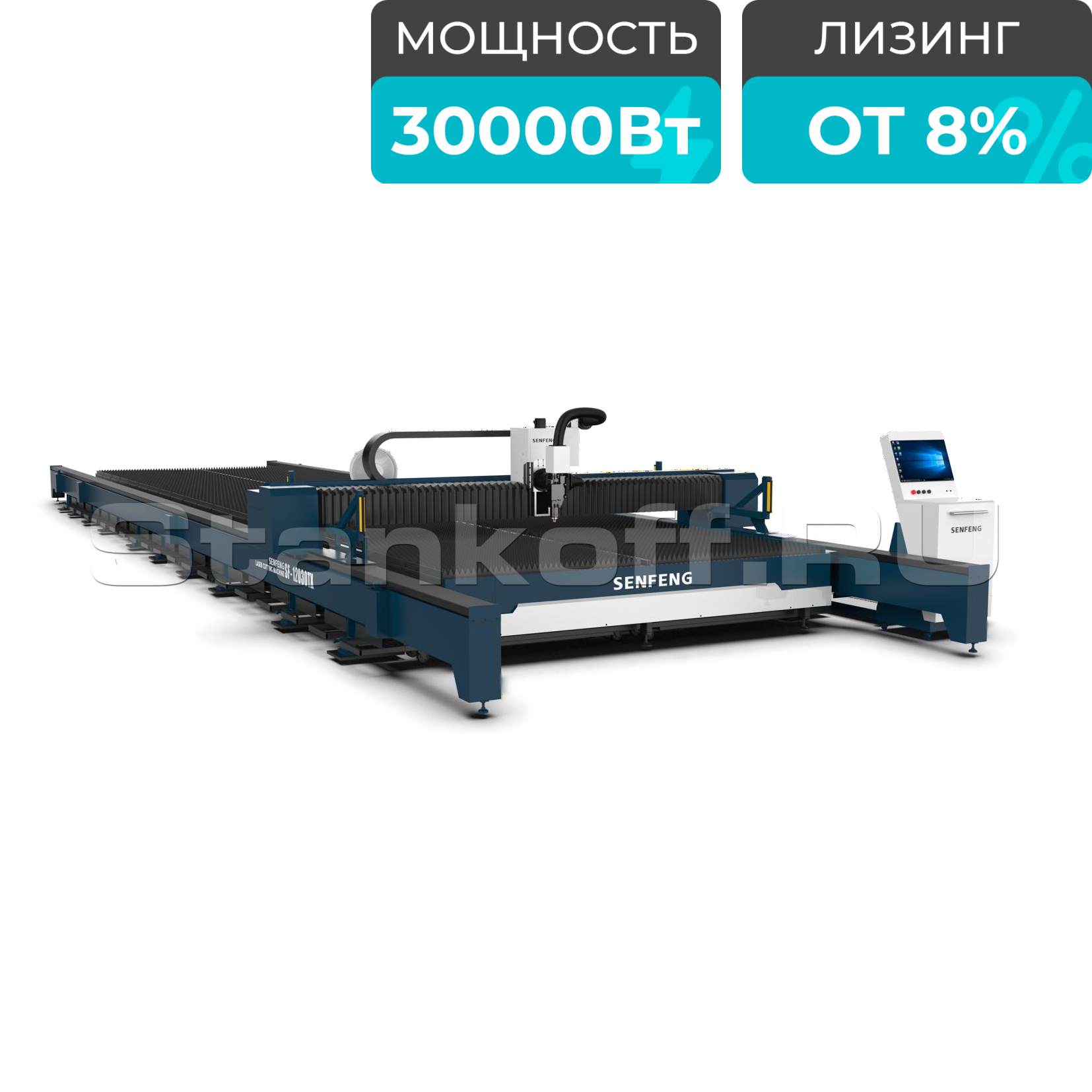 Оптоволоконный лазерный станок для резки металла SF24030R/30000 Raycus предназначен для резки листового металла с возможностью обработки кромки под углом до 45°.