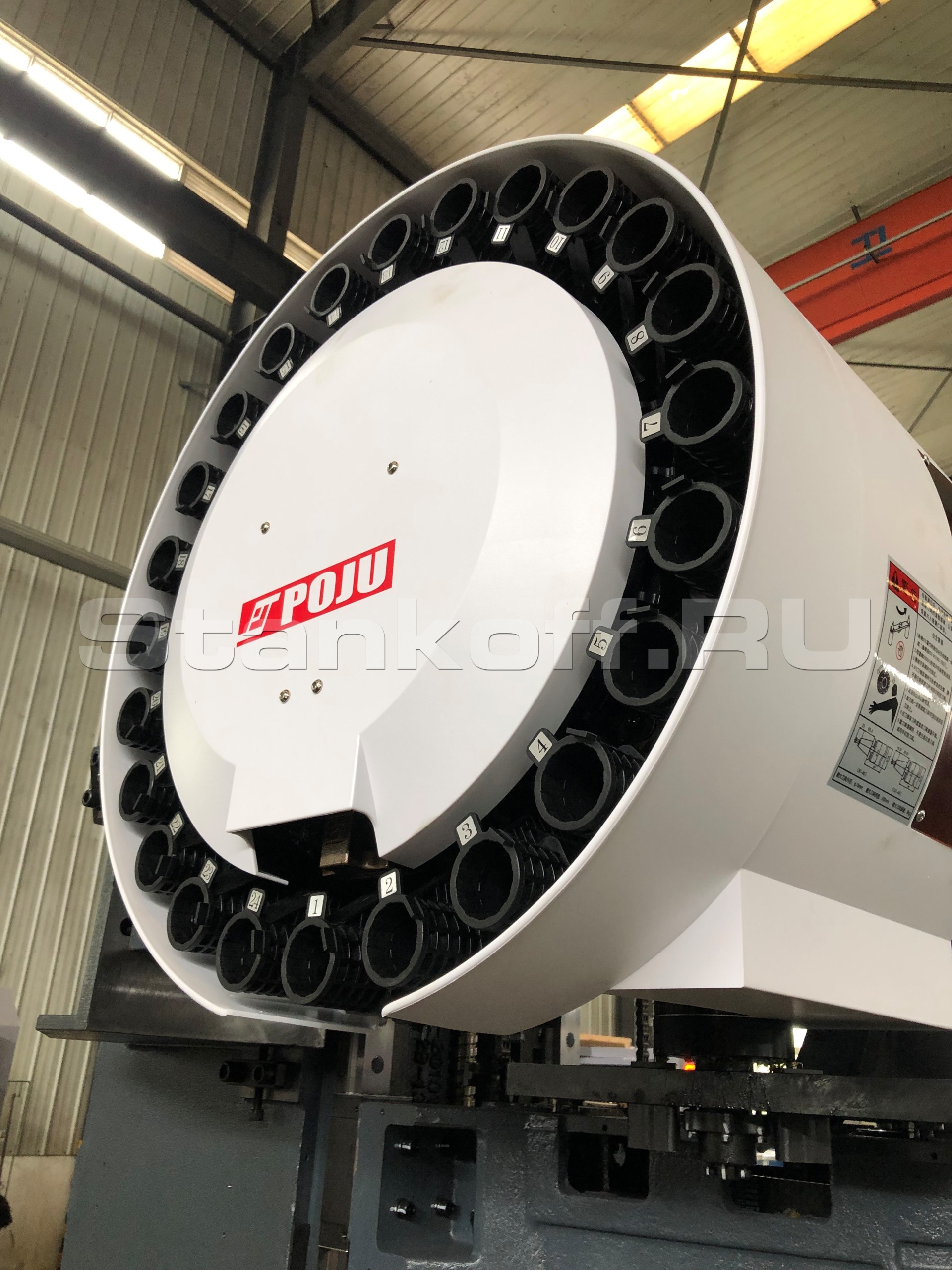 Стандартный инструментальный магазин станка рассчитан на 20 позиций и размещается сбоку на колонне. Держатели инструмента изготовлены из высокопрочной промышленной пластмассы, что обеспечивает малый вес, стойкость к коррозии и надёжность в эксплуатации. Запатентованная конструкция держателей снижает уровень шума и вибраций при вращении магазина. Жёсткое исполнение инструментального магазина позволяет выполнять быструю и стабильную смену инструмента, включая работу с тяжёлой оснасткой.Система ЧПУ GSK 25i