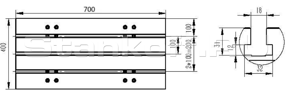 | Расстояние между Т-образными пазами, мм | 100 |