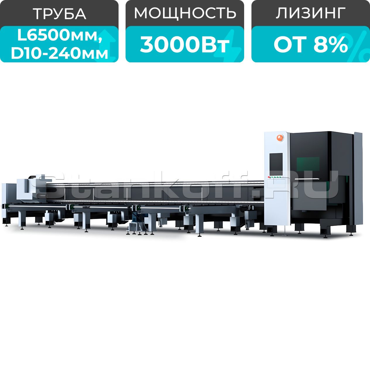 Полуавтоматическая подача повышает производительность, упрощает работу с длинномерными заготовками и обеспечивает стабильную серийную обработку труб длиной от 3000 до 6000 мм. Количество загрузочных позиций для труб максимального размера - 5 шт, максимальный вес всех труб не должен превышать 1500 кг.Лазерный источник Raycus 3 кВт