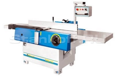 Станок предназначен для прямолинейного одностороннего строгания изделий из древесины по плоскости и снятия фасок под углом. Достоинствами станка являются отшлифованный чугунный стол длиной 2900мм, наличие четырехножевого вала с высокой частотой вращения, а также электродинамическая остановка режущего вала. Возможность подъема-опускания столов фуговальных станков и надежная их фиксация позволяют снимать нужный слой материала качественно и равномерно по всей длине заготовки.