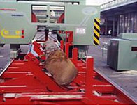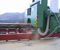 Устройство для сталкивания досок Одновременно с возвратом ленточной пилы толкает доску с бревна и таким способом увеличивает производительность, максимально эффективно с разгрузочным ленточным транспортером для автоматического удаления досок. |