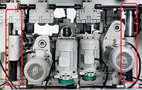 Каждый шпиндель оснащен прецизионным подшипником от мировых производителей, что обеспечивает их долговечность и плавность движения. Шпиндели имеют следующее расположение: 1-ый шпиндель - нижний строгальный, 2-ой шпиндель - правый фрезерный, 3-ий шпиндель - левый фрезерный, 4-ый шпиндель -верхний рейсмусовый, 5-ый шпиндель - верхний рейсмусовый, 6-ой шпиндель - нижний строгальный, 7-ой шпиндель - универсальный 360 градусов с моторизованной регулировкой по вертикали.