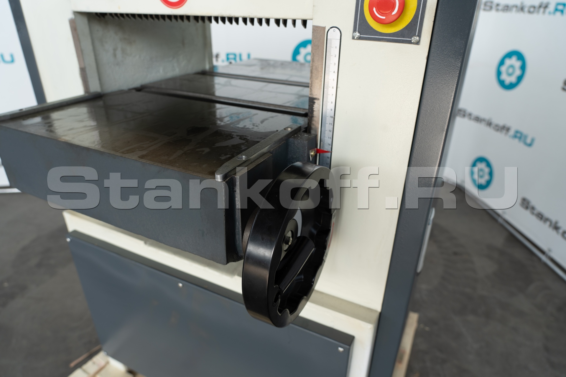 Подъем/опускание рабочего стола осуществляется с помощью маховика. Отображение размера по линейке. |