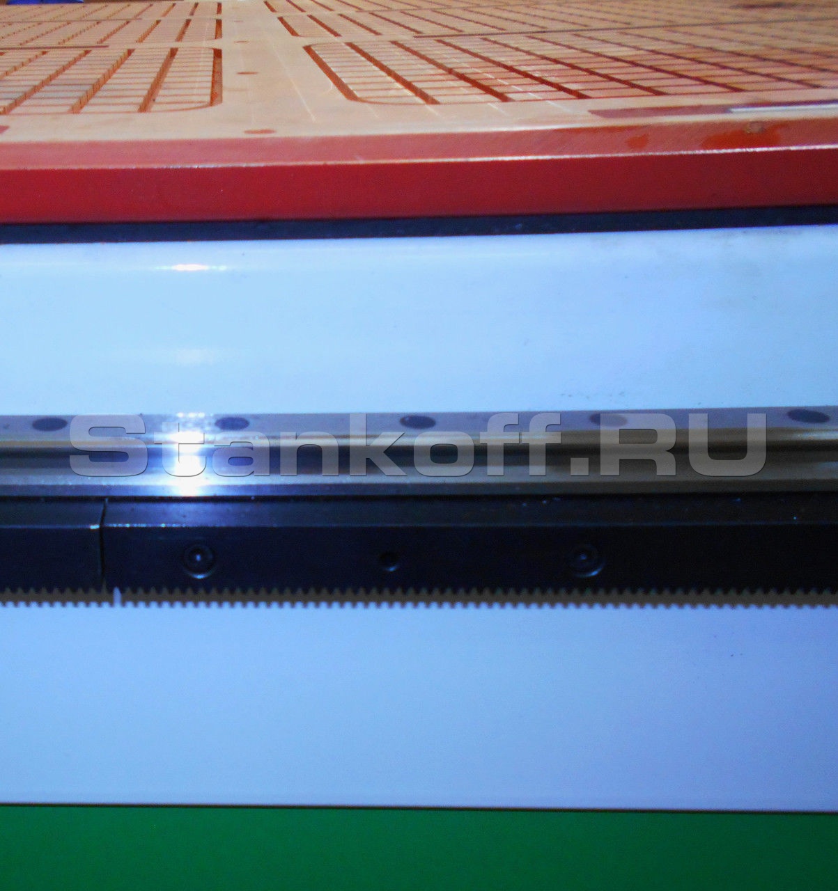 Большая поверхность рабочего стола разделена на несколько секторов для закрепления заготовок с помощью вакуума с возможностью зонирования на более мелкие зоны при помощи уплотнителя + система крепления механическим способом (струбцинами).