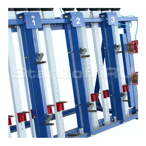 Обеспечивают фиксирование изделий на балке, предотвращая их смещение или падение во время укладки. Шаг перестановки прижимов составляет 50 мм, что позволяет точно регулировать положение прижимов в зависимости от размеров и формы укладываемых изделий.Балка-упор