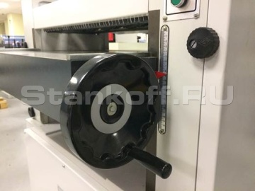 Регулировка стола по высоте осуществляется от отдельного двигателя. Точная подстройка с помощью маховика. Отображение размера по линейке.Ролики в столе