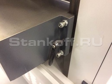Стол перемещается в 4-х направляющих, что исключает его перекос. Жесткая фиксация стола осуществляется с помощью рукояток.Электроподъем стола
